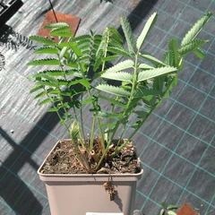 Sazenice zasazená v hranatém květináči o velikosti 9×9×9,5 cm.