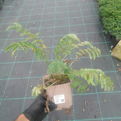 Velká sazenice je zasazená v hranatém květináči o velikosti 11×11×11 cm.